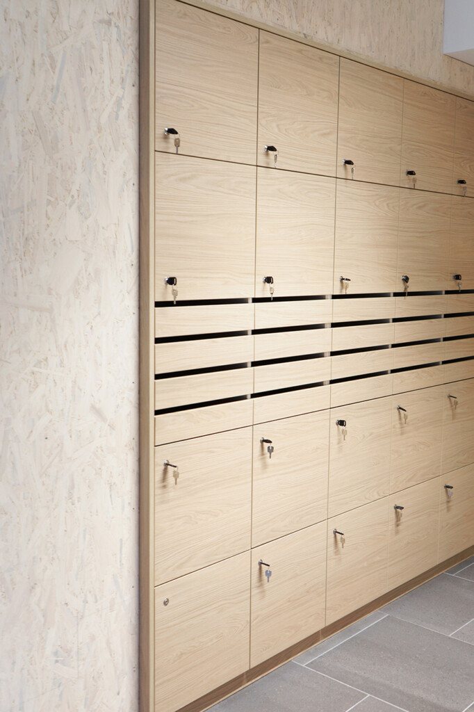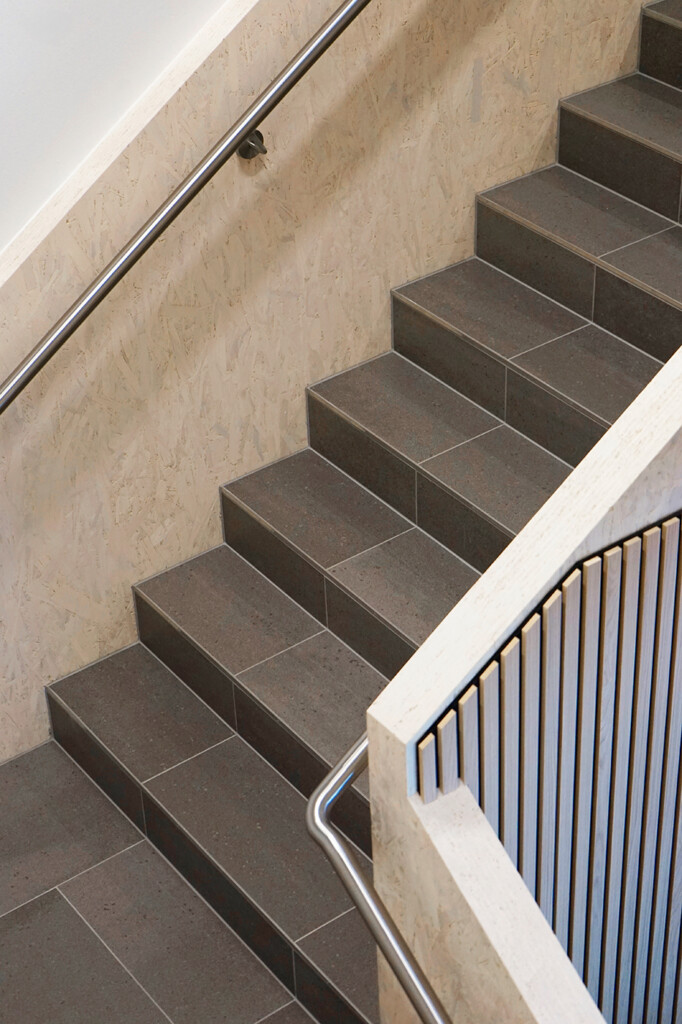 Bei der Umsetzung legte Mint Architecture besonderen Wert auf den respektvollen Umgang mit dem Bestand. Die klaren Strukturen des Verwaltungsgebäudes blieben bewusst erhalten und wurden durch neue Gestaltungselemente ergänzt, die eine moderne Arbeitskultur fördern. In enger Zusammenarbeit mit Egger entwickelte und realisierte das Planungsteam eine Innenarchitektur, die sich harmonisch mit dem Bestand verbindet. Durch die konsequente Integration der Egger-Materialien, die Verbindung der bestehenden Architektur mit einer zeitgemässen Formensprache und die Übertragung des im Stammhaus St. Johann erprobten New-Work-Konzepts auf eine grössere Fläche entstand eine Arbeitswelt, die innerhalb des Konzerns als richtungsweisendes Beispiel gilt.
