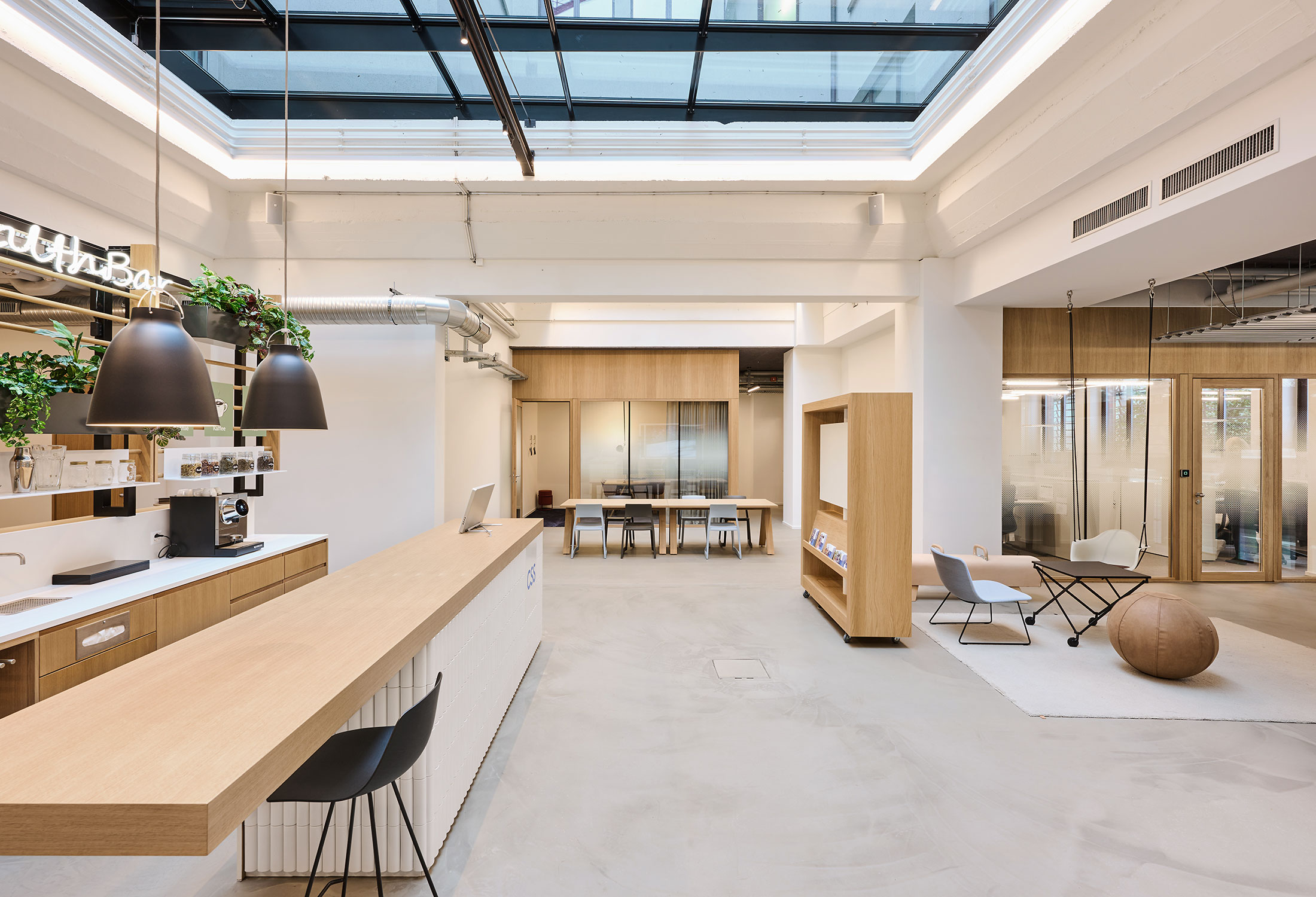 Eine nächste grössere Umsetzung erfolgte in Bern, wo es darum ging, das Betriebskonzept auf einer neuen Mietfläche von 475 m² zu implementieren. Der Standort in der Bundeshauptstadt befindet sich in unmittelbarer Nähe zum Bahnhof an der Laupenstrasse. Auf der Rückseite des Gebäudes fällt der Blick direkt auf die Geleise. Architektonisch bot die Fläche eine Besonderheit: eine Zenithalbeleuchtung mit zwei Oberlichter, welche die langgezogene tiefe Fläche im Parterre mit Tageslicht versorgt.