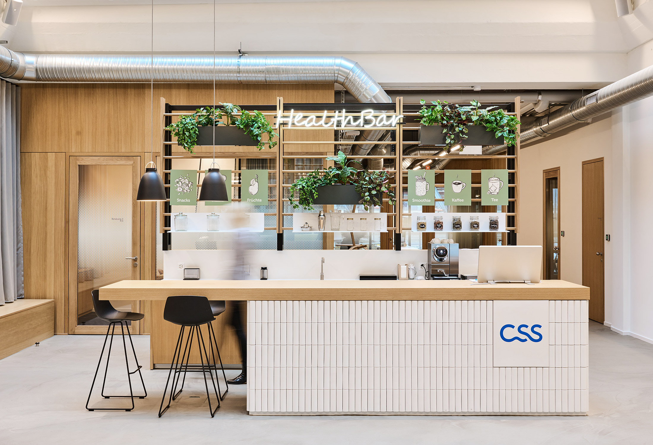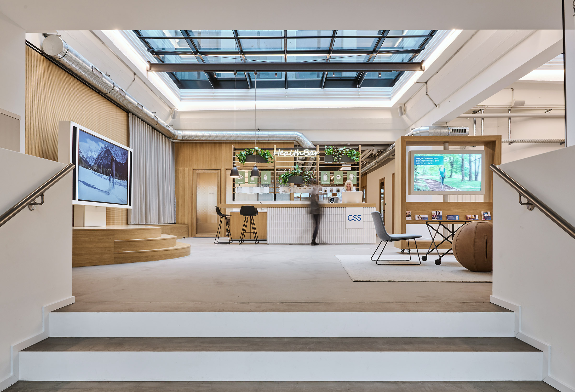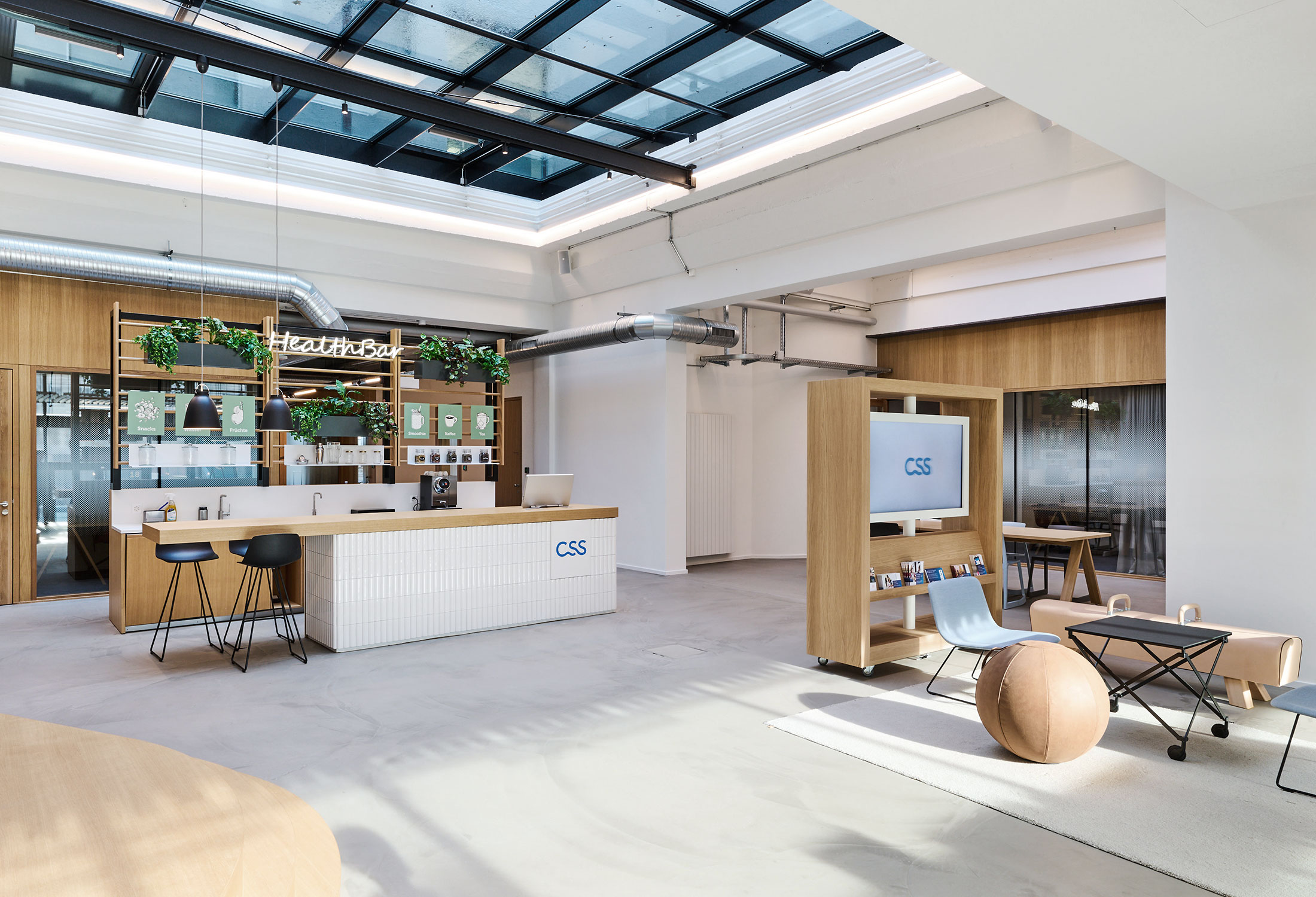 Mit der Neuausrichtung zur Gesundheitspartnerin entwickelten und realisierten die Architekturbüros Nau2 und Mint Architecture 2020 (ARGE) ein interaktives und hybrides Filialkonzept für den Standort St. Gallen. Dieses wurde zunächst an weiteren Standorten in der französischen und italienischen Schweiz auf bestehenden Flächen der CSS umgesetzt.